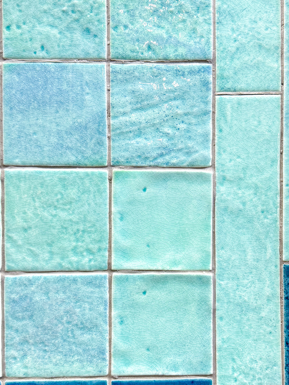 日本では近年、住宅や街なかでタイルの存在感が薄れつつありますが、アメリカでは今なお、公共空間や都市の中にタイルが生きています。地下鉄の駅を歩いていると、壁一面にタイルで描かれた駅名やアートがさりげなく施されていて、都市の一部として馴染んでいるのが印象的でした。