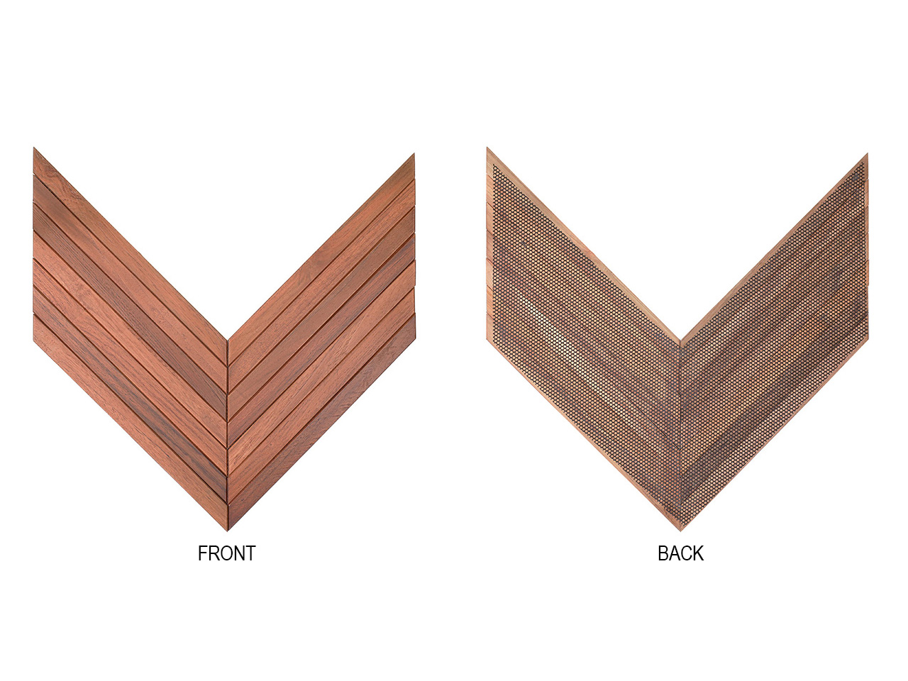 チーク端材を活かした繊細な仕上がりと、シート形状による優れた施工性が最大の特長です。従来のヘリンボーン仕上げに比べて施工時間を大幅に短縮できるため、工期とコストにシビアなプロジェクトにおいても、気品のあるフレンチスタイルを効率的に実現します。
