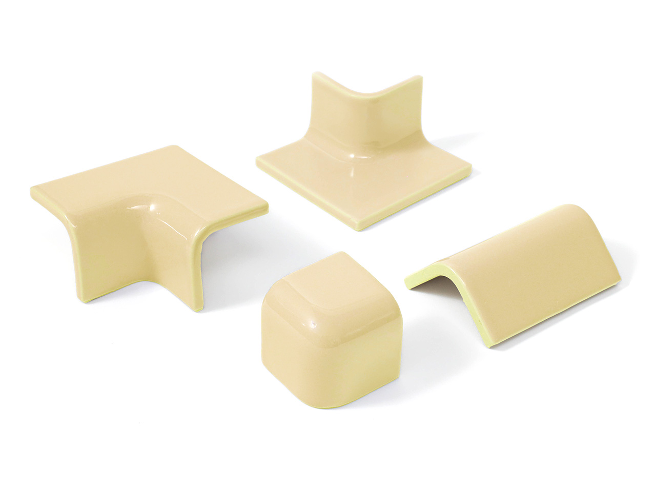 一般的な平らなタイル(平物)では納まりにくい「出隅部(コーナー)」、「床面と壁面の境界」などに使用するために、あらかじめ特殊な形状に成形されたタイルの総称です。
