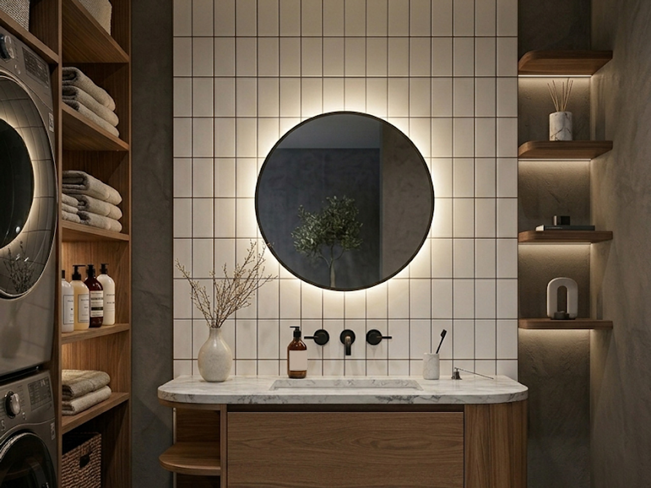 3Dトリムとスキームラージフォーマットの組み合わせは、意匠性が求められる「什器」や、清潔感が重視される「水回り」でその真価を発揮します。