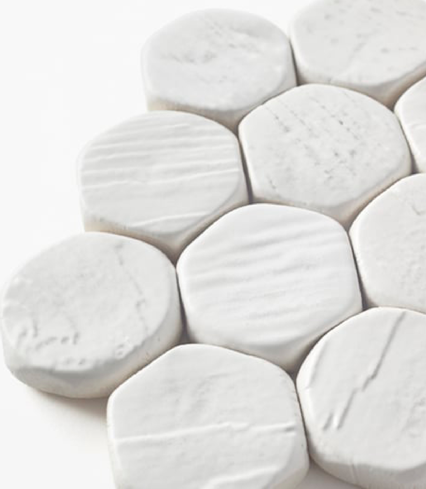 Tegone Tile blends simplicity with a unique, subtle irregularity, offering a distinct charm that's both pleasing and quietly captivating. The organic shapes, designed to highlight the material's natural qualities, never fail to engage the viewer.