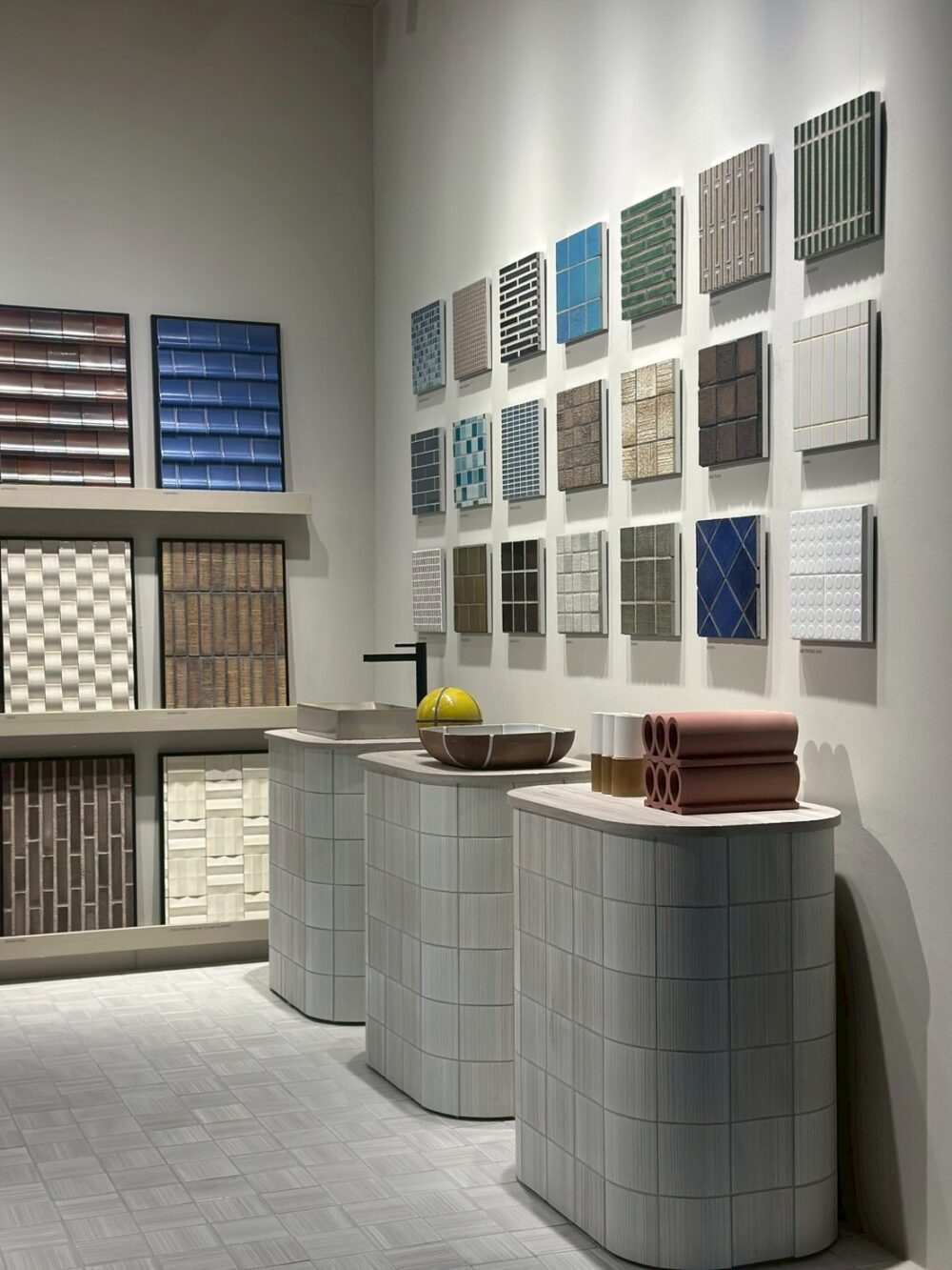 クラフトマンシップと革新が息づく日本のタイルデザインをご覧いただくとともに、伝統的な押出成形技法「湿式成形」についても説明させていただきました。焼成の過程で生まれる繊細な色調や質感の変化が、一枚ごとに異なる個性と豊かな表情をお楽しみいただけたかと思います。