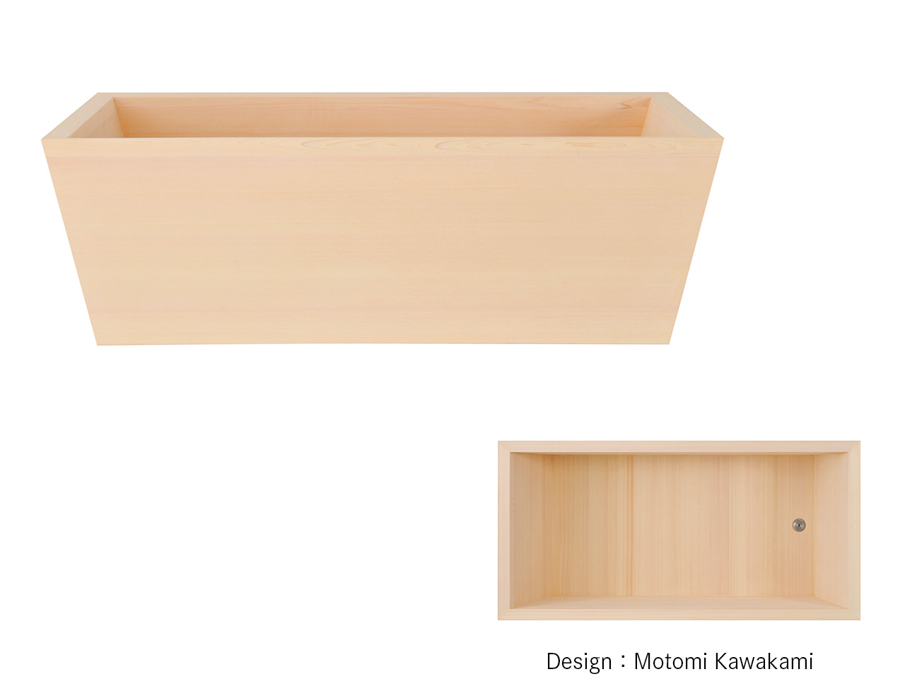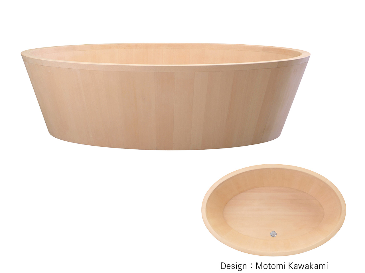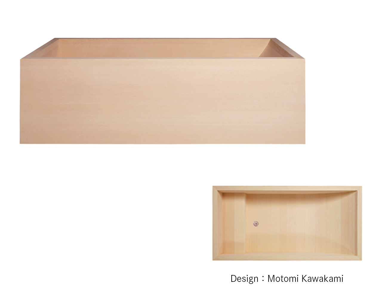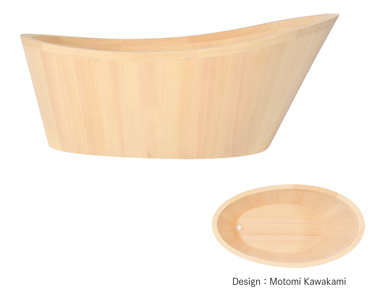 独自の開発技術によりなめらかな曲線やR形状にも対応した究極の自由形状の檜風呂が完成しました。通常であれば不可欠な「タガ」がいらない特殊構造によりデザイン性を追求した世界へと発信する檜風呂の未来を創造します。